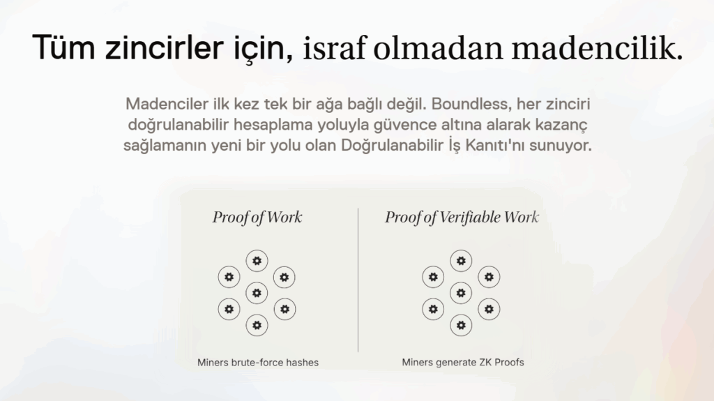 - Boundless, provlerin ürettiği “kullanışlı” hesaplama için ödeme almasını sağlayan PoVW (Proof-of-Verifiable-Work) adını verdiği teşvik mekanizmasını kullanır; PoVW, üretilen kanıtın karmaşıklığına/değerine göre ödülleri meterlar. Bu, provleri sadece “iş yapmak” yerine “doğru ve işe yarar iş yapmak” için ödüllendirir.