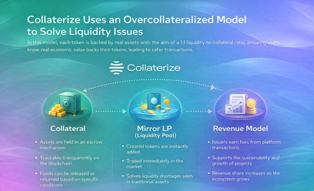 Collaterize, güvenliği sağlamak ve likiditeyi artırmak için aşırı teminatlı bir model kullanır. Her token, gerçek bir varlıkla desteklenir ve değerinin arkasında somut bir karşılık bulunur.