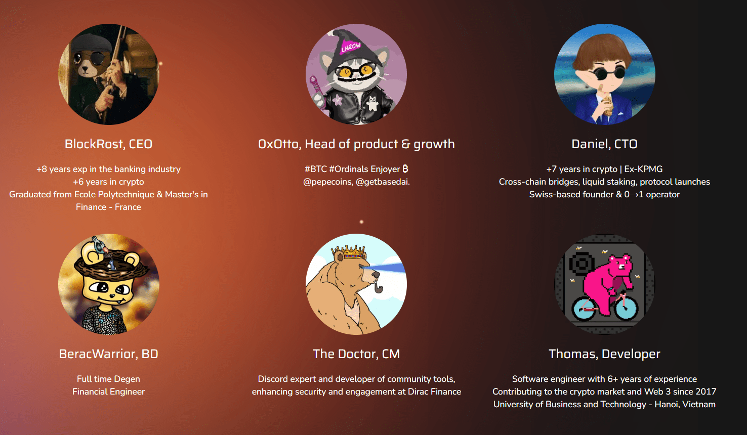 BlockRost (CEO): Ecole Polytechnique mezunu, 8+ yıl bankacılık ve finansal modelleme uzmanı.