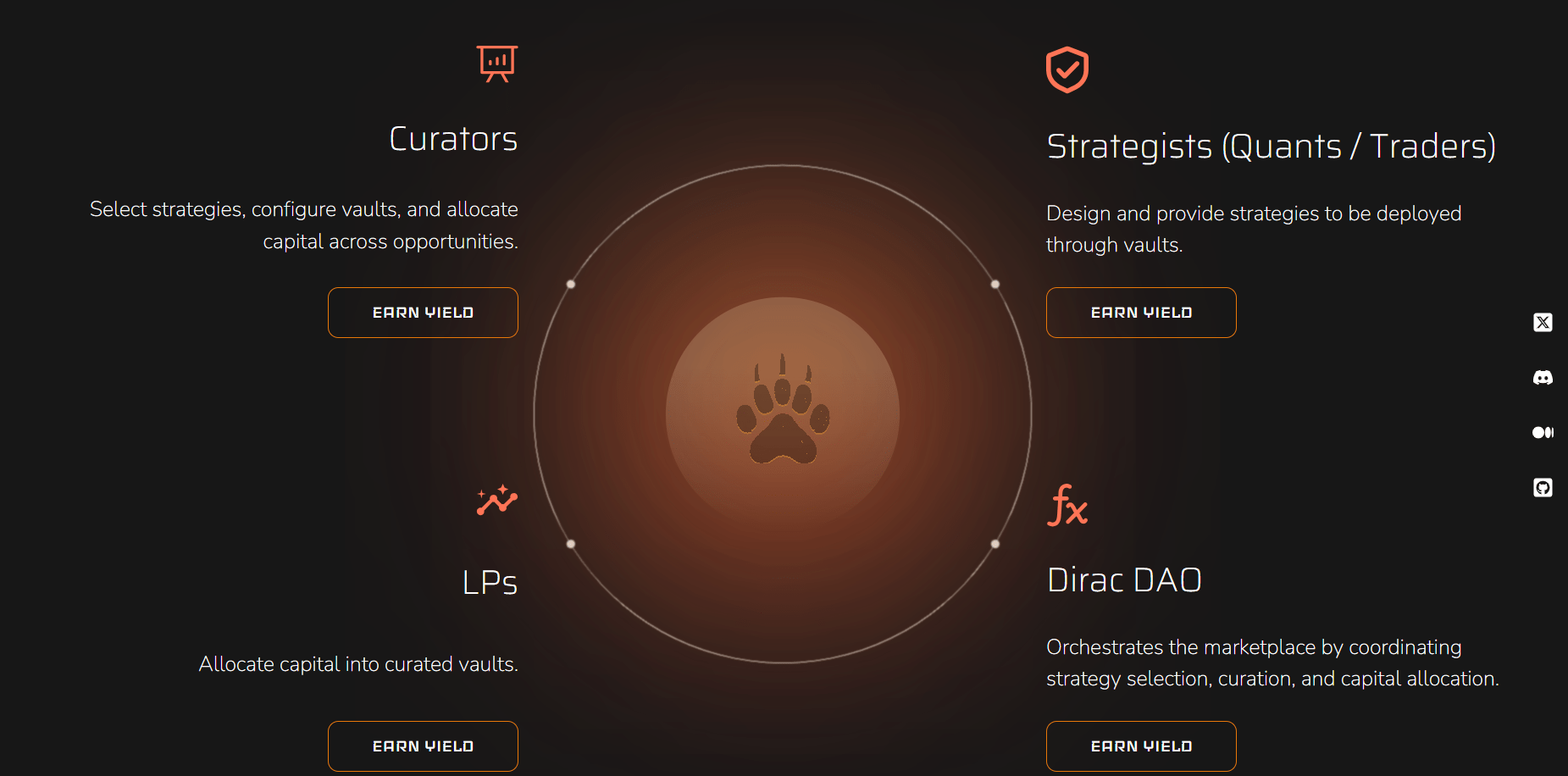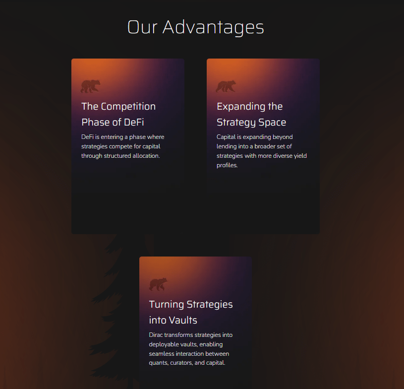 Dirac’ın temel ürünü olan vault’lar, basit yatırım havuzları değildir. Her vault, belirli bir yatırım stratejisini otomatik olarak uygulayan bir yapı gibi çalışır. İçinde strateji kuralları, risk sınırları ve piyasa değişimlerine göre otomatik ayarlama sistemi bulunur.