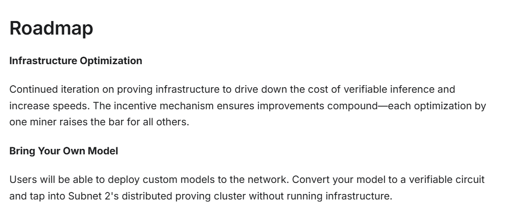 • Kendi Modelini Getir (Bring Your Own Model – BYOM): Kullanıcıların kendi özel yapay zeka modellerini ağa entegre edebilmelerini sağlayacak devrimsel bir özellik. Geliştiriciler, kendi modellerini doğrulanabilir devrelere (verifiable circuits) dönüştürerek, herhangi bir altyapı kurma maliyetine katlanmadan Subnet 2’nin devasa ispat kümesinden faydalanabilecekler.