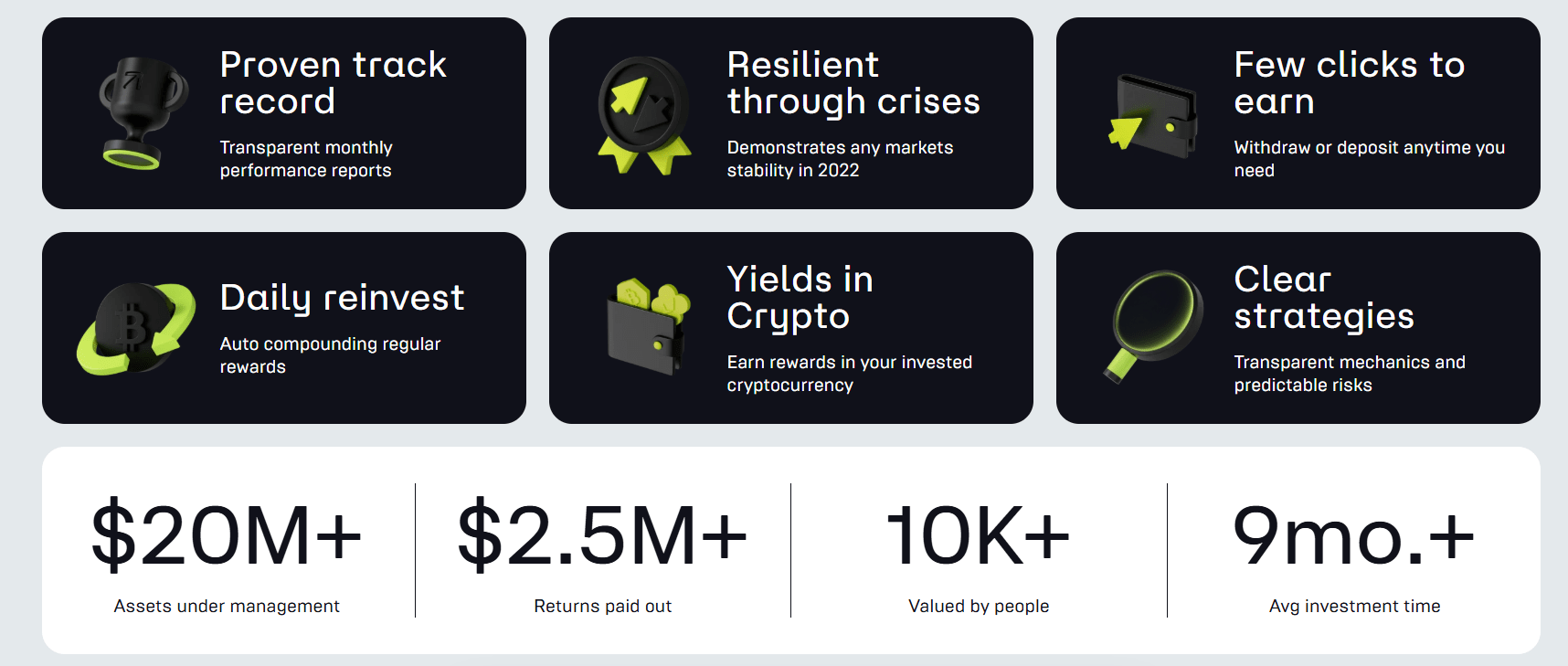 Platform, sadece yüksek getiri vaat etmiyor; uzun vadeli, sürdürülebilir ve teknik bilgi gerektirmeyen bir Web3 varlık yönetimi sunuyor. Hibrit yapısı sayesinde profesyonel fon yönetiminin esnekliğini, standart bir yatırımcının bile rahatça yönetebileceği sade bir arayüzde buluşturuyor.