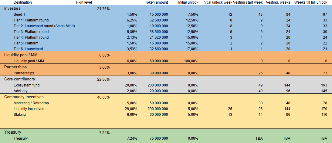 • Çekirdek Ekip: %22 (144 haftalık vesting)