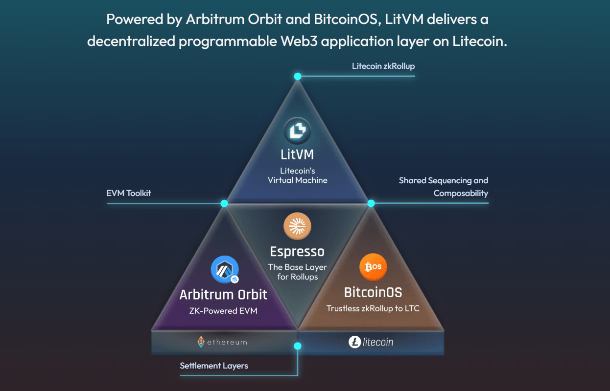 LitVM, tek bir ağın sınırlarına hapsolmadan modüler blockchain dünyasının en güçlü araçlarını birleştiriyor. Arbitrum Orbit ile EVM yeteneklerini, BitcoinOS üzerinden Litecoin’in PoW güvenliğini ve Espresso ile paylaşımlı sıralayıcı (shared sequencer) yapısını tek bir çatıda harmanlıyor.